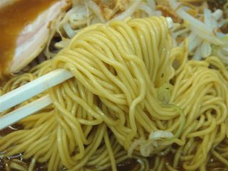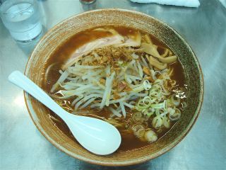 しばらくするとBGMにのって覆麺が登場した。スープは濃い醤油色である。飲んでみると塩分濃度が高いのだろう、かなり塩辛く感じられる。トッピングの揚げネギの香りも感じられる。麺は細ストレートで200gと分量が多い。具は、チャーシュー・もやし・メンマ・揚げネギ。なお、覆麺レスラーの出身地は「コンガ」とのこと。「コ」「ン」「ガ」を並べかえると・・・・・(2009/6/7)
