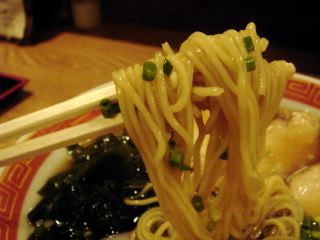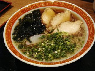 しばらくして出来てたラーメンは、ほのかに魚介系の香りがする。スープは、おそらくイリコだし系の甘めの中華スープ風である。麺は細ストレート。具は、チャーシュー(鳥肉)3・ワカメ・メンマ・薄い紅縁取りカマボコ・ネギ。揚げ玉のトッピングはフリーである。あっさりしたラーメンでこれなら夏でも食べられるようだ。(2009/8/1)