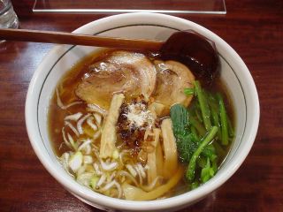 明日は朝から和光で仕事なので和光に前泊。移動中にちょこっと寄る。この店は約1年前の2003年12月3日に開店。魚介系ダシのお店ということで期待感が膨らむ。作業工程が多くて丁寧。麺の湯切りも非常に丁寧である。味の方は、めちゃくちゃ和風で、魚介系好きにはたまらない。メニューには「鶏油と落花生油でネギを揚げて作った油を使用」とある。麺は、中ほぼストレートで喉ごしがよい。具は、炙りチャーシュー(2)・メンマ・ほうれん草・ネギ。若い二人で切り盛りしていたが、ご夫婦なのか? また食べたい味である。(2004/12/09)