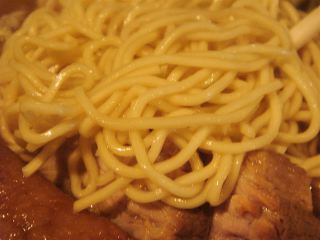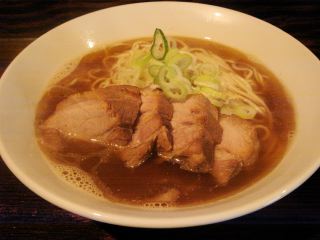 雨は大降りだが、中華そばは小ぶりの丼で出てきた。スープは煮干し・かつお節・昆布などで、無化調だが、かなり濃厚な魚介系。実に好みである。麺は中細ストレート。小麦の美味しさが口の中に感じられ、なめらかで上質な麺である。具は、チャーシュー(4)・ネギとシンプル。チャーシューはとても厚くて食べごたえがある。一つは肉塊の端のようで角煮のような大きさ。(2007/10/27)