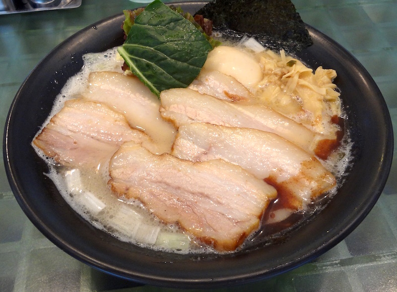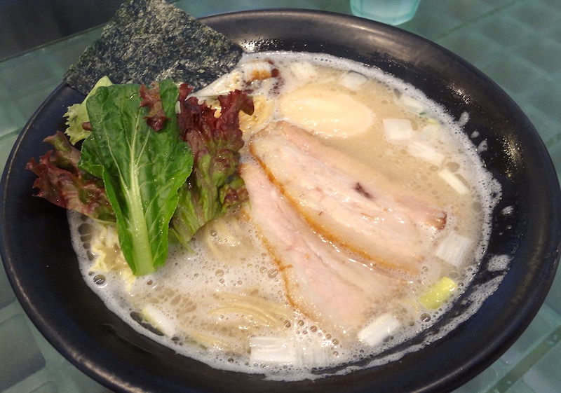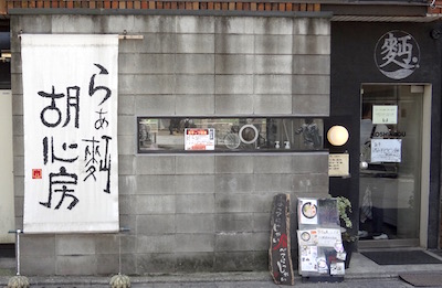 二度目の胡心房にシャッターする。「豚骨魚介」としているが下処理がしっかりしているためか豚骨の臭いはゼロ。ほんのりと魚介の香りがする程度。まろやかな白濁スープである。麺は細ストレート。具はチャーシュー・のり・穂先メンマ・レタス・ネギ + 味玉。(2018/6)