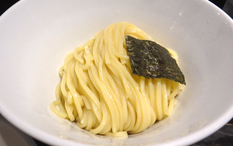 数年前にテレビ番組で1位になり大行列が続いた高田馬場のお店の新宿店。今日は祝日だが、新宿で仕事だ。メニューは、掛け豚そば(ラーメン)830、漬け豚そば(つけめん)830、和え豚そば(油そば)830とネーミングが変わっているので、ちょっとわかりにくい。全部乗せらしい、俺の掛け豚そば、俺の漬け豚そば、俺の和え豚そばは、1,130円。漬け豚そばの食券を買う。バイトの女の子に席に案内され、「並と大盛り、特盛りがあり、すべて同じ値段ですがどうしますか?」と尋ねられた。「並は何グラム?」と聞くと、「茹で上がりで300gです」とのこと。「じゃぁ、並でお願いします」。特盛りは600gあるそうだ。