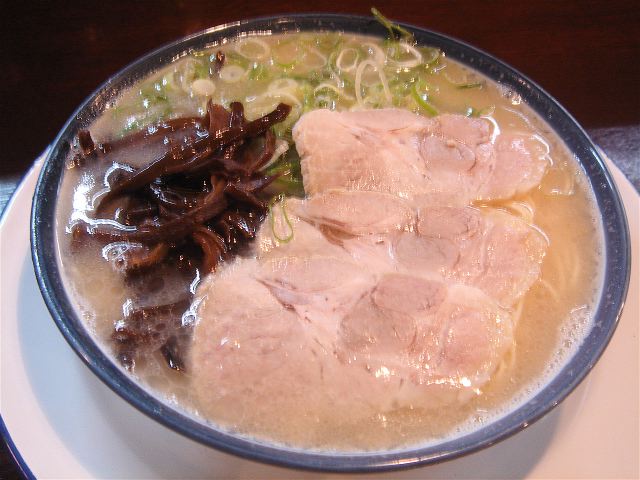 今日は仕事で大井町(東京)へ。駅から歩いて5分くらいの場所にしばらくはある。券売機でラーメンの食券を買いカウンターに座る。“しばらく”して出てきたラーメンは、お皿の上の小さな丼に入って出てきた。3枚のチャーシューとキクラゲとネギが表面を覆っている。スープは豚骨臭さの残る博多らしいラーメン。それもそのはず「しばらく」は福岡市の西新にあるお店の支店なのである。都内にはここ大井町店以外に日本橋店と町屋店がある。麺は細ストレートで量は少なめ。(2011/11)