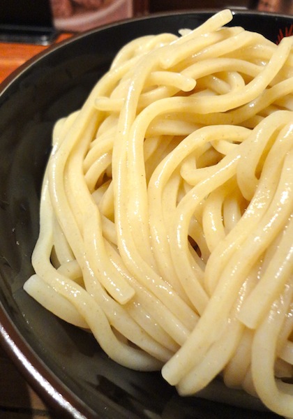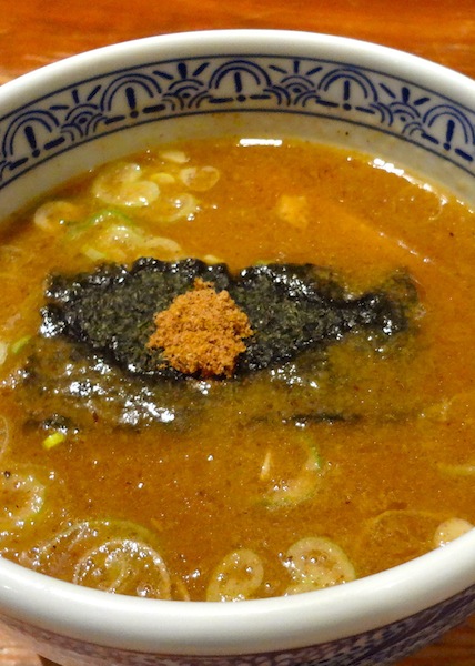 つけ麺専門店の三田製麺所。こってりした豚骨醤油で魚粉の入った、少し前から流行している味のお店だ。つけ麺の並(300g)を注文。モチモチとした太麺のつけ麺に大満足。スープ割りもしたので、お腹が一杯だ。(2015/6)