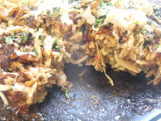ざて、味ですが、見た目はお好み焼きと同じです。ただし小麦粉を使わずに、つなぎが卵なので、とてもあっさりしています。おやつでもいけるような感じです。大満足です。(2011/07)