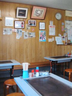 紀伊半島一周の青春18きっぷの旅の途中に寄りました。JRの御坊駅から紀州鉄道に乗り、まずは終点の西御坊駅へ。折り返して紀伊御坊駅で下車し、友人の務める国保日高総合病院へ表敬訪問の後、タクシーで行きました。なんたって、外気が暑いんですよ。ポロシャツやズボンが汗でドロドロなんです。そんなわけで、お店には開店15分前に着いてしまいました。駐車場の隅の日陰を探して待っていたら、お店が開いて「どうぞお入りください。外が暑いでしょう。」と天使のようなお言葉をかけていただきました。中にいれていただけるだけで大満足なんですが、早速作っていただけるようです。天使が天女を連れてきてくれたようです(笑)。 せち焼きのミックスを注文し、マヨネーズもお願いしました。メニューにはせち焼きについて書いてあります。『せち焼きは、1960年頃、初代店主、山下夏子がお客様とともに考え出したもので、当店で生まれました。「おばちゃん、焼そばを卵で、せちごうてくれ。」 せち焼きの語源は御坊弁の「せちがう」からきています。「せちがう」とは無茶苦茶にするというような意味です。』とのことです。