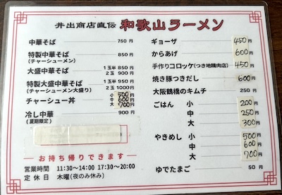 久しぶりの常任特派員報告。井出商店直伝のお店。井出商店がある和歌山市とこの新宮市は共に和歌山県ではあるが電車で200.7km、道路で約180kmも離れている。そんな新宮市で井出商店の味が食べられるとは誠に嬉しいことである。(2024/8)