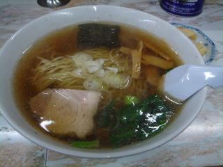 出てきたラーメンは、スープは透明感の高い鶏ガラの和風ダシ。あっさりしているが、毎日食べても飽きがこないような控えめな美味しさであり、見た目もとてもきれいである。麺は、手打ちというだけに太さが不揃いの縮れ麺。うーん、なかなかのものである。具は、チャーシュー・メンマ・のり・かまぼこ・ほうれん草・ネギ。(2006.12.23)