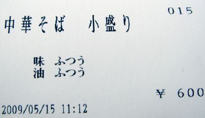 M氏から勧められたケンチャンラーメンにやってきた。入って左側にある券売機で中華そば(小)の食券を購入。味や油は指定できるようだが、初めてなので「味ふつう」「油ふつう」にしてみる。食券を店員に手渡すのかと思ったら、先客たちは自分のテーブルに置いて待っている。自動的に注文が厨房にわかるようになっているようだ。様子を見ていると、ラーメンが出来上がったら、そのラーメンを持った店員さんが「××番でお待ちの方?」と声をかけ、それに応えて手を挙げたお客さんのところに持っていっている。なるほど、いろいろなシステムがあるものだなぁ。私の番号は15番である。