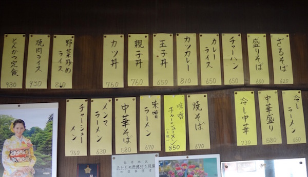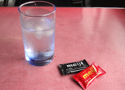 山形鉄道フラワー長井線の南長井駅で下車する。そしてしばらく歩くとまるじゅう食堂に着く。店内に入るとそこは昭和ワールドとなっていた。お冷と一緒に出されたチョコレートが二つ。さりげないサービスがうれしい。冷しラーメンを注文する。山形県は冷しラーメンが有名なのだ。