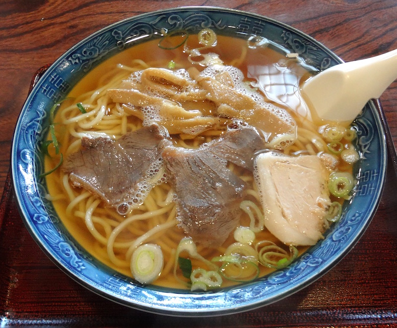 長井駅と南長井駅の中間にある大衆食堂。店内は常連さんたちで賑わっている。今後は温かい支那そばを注文。ちなみに「冷しどん」とは「冷しラーメン」だそうだ。でてきたラーメンのスープは薄い。もうちょっとコクが欲しい。中ストレート麺は少し柔らかい。具のチャーシューは馬肉2枚と豚1枚。(2019/05)