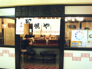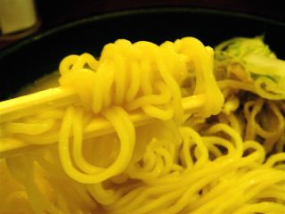 台風22号が近づいている影響かあるいは秋雨前線の影響か、雨がシトシト降っている。今夜は横浜での仕事である。その前に軽く一杯。不完全な瓢箪型をしたカウンタータイプのテーブルにはお客さんが5割の入り。味噌ラーメンを注文。スープは白味噌の甘めのもの。テーブルにある唐辛子をお好みで入れるとちょうどいい甘辛さになるようだ。麺は中縮れ麺。もっとコシがあってもいいようだ。具はチャーシュー・メンマ・もやし炒め・ネギ。(2004/10/8)