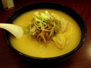 コメント:先日べんけいで味噌ラーメンを食べたことをある掲示板に書き込みしたら、それは札幌やの味噌ラーメンに似ているとの指摘を受けたので行ってきた。ここは意地でも味噌ラーメン(笑)。スープは、白味噌仕立てであっさりしているが粉っぽさを感じた。さらに、深みがない、立体感がないのだ。麺は、太ストレート麺でコシもあるが柔らかい。具は、チャーシュー(1)・もやしいため・メンマ・ネギ。店の雰囲気はてきぱきしていて好感をもてるが、場所がいいだけに平板状の味には残念。べんけいと似ているといえば似ているが、違う感じがした。