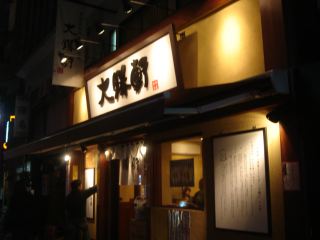 いまや伝説とも言える東池袋の大勝軒の関連店として2005年5月1日に開店。メニューはあつもり650、もりそば、中華そば630など。餃子もあった。店外の券売機で中華そばの食券を購入。店内に3人待ち。スープの味の濃さ、麺の茹で加減、油の量が調節できるようだが、最初なのでデフォルトで。「麺の量は普通の2.5倍(350g)あります」とのコメントがあちこちにあった。たちまち私の順番に。