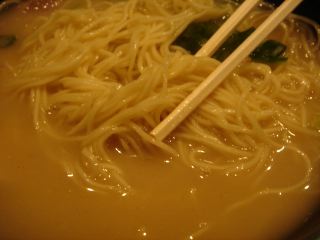 豚骨の臭いはあまり感じない。ライトな豚骨スープである。久留米ってこんなにライトだっけ? 麺は中細ストレート麺。具はチャーシュー・メンマ・のり・ネギ。(2007.3.25)