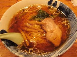 しばらくしてラーメンが出てきた。それでもまだおしゃべりは止まらない。まぁいいや。スープは甘めの醤油味で可もなく不可もなし。麺はモチモチ中縮れの中華麺。具は、メンマ・チャーシュー・ほうれん草・ネギ。チャーシューはグー!(2008/3/18)