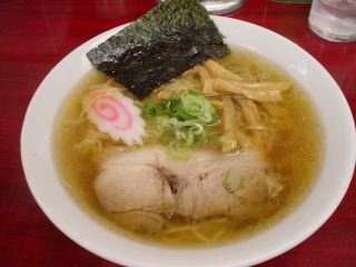 ロイヤルホールヨコハマでの仕事の前に軽く一杯。メニューは“とりがらしょうゆ(細麺)”と“とんこつしょうゆ(太麺)”の基本的に二種類。その他にもメニューは多彩。“とりがらしょうゆ”の中華そばを注文。スープは鶏ガラと野菜の旨みが出ている。麺は中細縮れ麺。具はチャーシュー・メンマ・のり・なると・ネギ。次はとんこつしょうゆを食べてみよう。(2004/10/7)