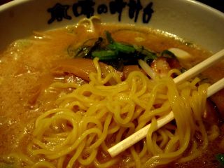 スープは予想していたものよりもあっさりした(でも普通よりは濃厚)みそ味。ひょっとして札幌市内 とは味を替えて関東風だったりして。麺は太くて黄色い縮れ麺。いわゆる札幌 みそラーメンの麺。具は、チャーシュー・メンマ・もやしとタマネギ炒め・ネギ。途中で生ニンニクを投入。スープは熱々で食べてるうちに汗が出てきた。(2006.11.03)