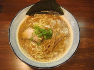 出てきたラーメンは、魚介豚骨系の数年前から流行りのもの。麺は中太やや縮れ。具は、メンマ・チャーシュー・なると・のり・ネギ。普通に美味しいラーメンです。(2009/5/23)