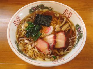 しばらくして出てきたラーメンは、美しいビジュアルのこれぞ中華そば!といった感じの甘めのもの。スープは豚骨・鶏ガラ・魚介などで、昔の中華そばはこんなだったなぁ、と思い出さずにはいられない。さすがはザ・ラーメン屋出身である。麺は細縮れでこれまた喉ごしがよい。具は、紅縁取りチャーシュー・メンマ・ほうれん草・ナルト・のり・ネギ。紅の縁取りのチャーシューは抜群に美味しい。(2009/7/11)