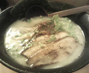 出てきたラーメンは、昨年くらいから流行をみせている白濁した鶏白湯。白濁したスープは豚骨だ、と思っている人も多いが、実は鶏ガラでも強火で焚けば白濁する。飲んでみると、鶏の甘味がジワッーと広がる。美味しいスープである。麺は、平打ちの縮れ麺。モチモチと小麦の味を楽しめて、スープとの絡みもよい。具は、チャーシュー・メンマ・のり・水菜・ネギ。(2007/11/11)