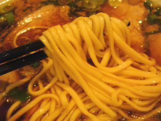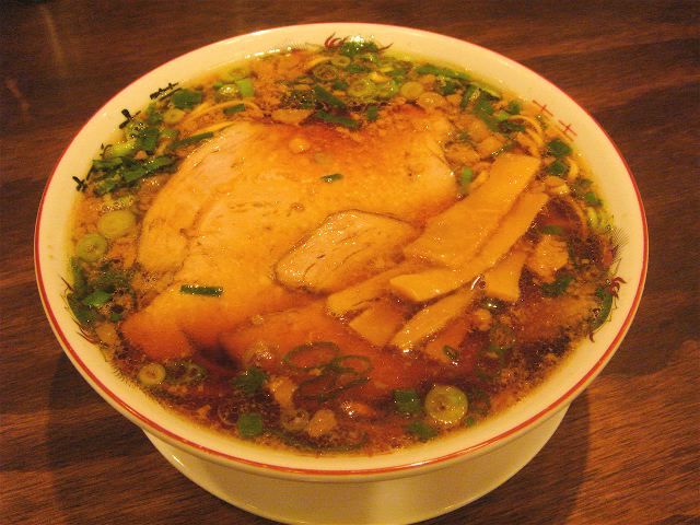 かなり待ってから出てきたラーメンは、スープは思いっきりの醤油色。美味しそうなビジュアルである。そこにミンチ(背脂)が乗っている。麺は細平打ちで、ツルツルとしている。具は、チャーシュー(大)・メンマ・ネギ。スッキリとした醤油ラーメンだ。(2010/11)