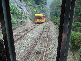 ケーブルカーの乗車駅は正式には清滝駅というらしい。標高は201メートルである。最大勾配31度18分という日本一の急勾配を約6分で高尾山へと運んでくれる。高尾山駅の標高は472メートルなので、6分で271メートル稼いだわけだ。日本一の急勾配は高尾山駅に到着する直前にあるのだが、大山ケーブルカーに比べると確かに急勾配だった。