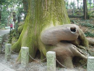 途中に蛸杉がある。根の形が蛸に似ているのでこの名がある。高さ37m、周囲約6m、樹齢約450年のこの杉の大木は、昭和39年に八王子市の指定天然記念物に指定されている。昭和53年(1978年)の記載なので今では樹齢約475年くらいかな。