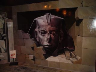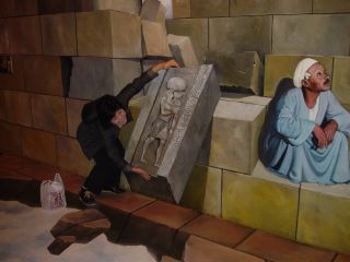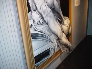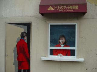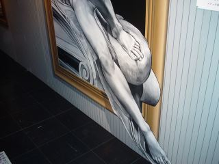 写真ではそうでもないかも知れませんが、実際には平面の絵が、かなり立体的に見えました。目の錯覚を利用しているのでしょう。