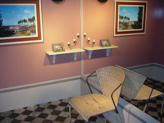 左側も平面の絵です。ただ手の位置を合わせて写真を撮るとこうなります。右側は鏡に写った部屋のようですが、左右対称の部屋が二つ並んでいるだけなので、鏡に写る(はずの)自分の姿が見えないので、ビックリすることでしょう。