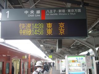 14時34分に高尾駅到着し、JRの14時39分発の快速東京行きに乗り換え。
