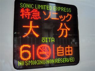 食後に車内を散策するが、本当に列車自体がおしゃれである。途中で宇佐(うさ)駅に停車するが、案内表示の英語が、「・・・・・arrived at USA・・・・・」となっている。読みようによっては、アメリカに到着するのかと悩む人がいるかもしれない(爆)。 その後は眠くなりウトウトしてしまったためなのか、あっという間に別府に到着した。