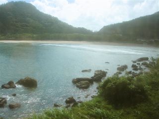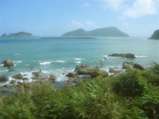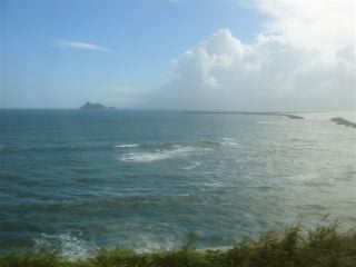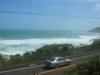 青島駅付近では南国ムードが漂ってくる。天気はますますよくなり、これで雨の心配も完全になくなったようだ。ただし海の波は高いままである。内海(うちうみ)駅〜小内海(こうちうみ)駅間では鬼の洗濯岩の奇景が車窓からも眺められる。伊比井(いびい)駅〜油津駅までは内陸部を通るが、油津駅〜南郷駅まではまた海沿いで車窓が楽しい。