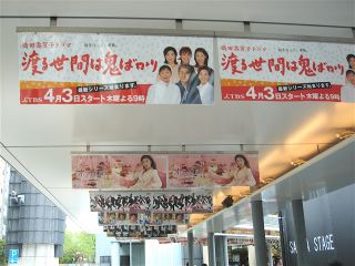 地上へ出るとライブハウスの赤坂ブリッツとエンタテイメント劇場の赤坂ACTシアターがあります。その先にあるTBS放送センターに向かう途中の通路の天井には番組の宣伝がかかっています。