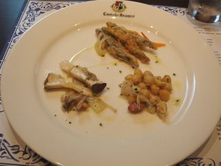この中のカステロ・ブランコというポルトガル料理のお店で昼食を食べることにしました。二人ともランチのコースで、メインディッシュは私は肉、妻は魚を注文しました。