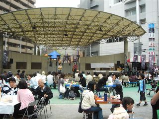 昔のハトポッポ公園というのは、薄暗くて汚い公園をいう印象があったのに、リニューアルしてとてもきれいになりました。ステージなども出来ており、そこではストリートミュージシャンの演奏や、早食い・大食いフードファイター大会(コーラ早飲み・ビール早飲み・ゆで卵早食い・コロッケ早食い・ポップコーン大食い・焼そば大食い)などが順次行われていました。