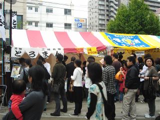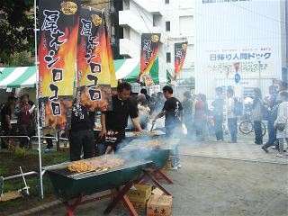 厚木シロコロ・ホルモン、三崎トロまん、平塚弦斎カレーパン、静岡おでん、富士宮やきそばなどには大行列が出来ており、あまりの盛況ぶりにビックリしてしまいました。特に厚木シロコロ・ホルモンと富士宮やきそばの行列は尋常ではないくらいで、「最後尾」と書いた看板をもった本部役員と思わず苦笑い。猪すいとんは、すでに売切れているようでした。ちょっとテンションが下がってしまいました。