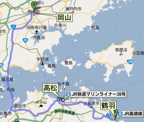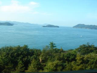快速マリンライナーで瀬戸内海を瀬戸大橋で本州へ渡る。雄大な車窓に満足する。