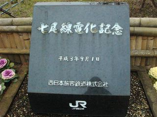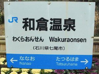 和倉温泉駅名標 ◇ 七尾線電化記念碑