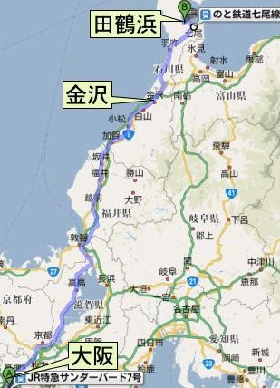 (本来の予定:大阪08:42〜12:10七尾 七尾12:19〜12:32田鶴浜)