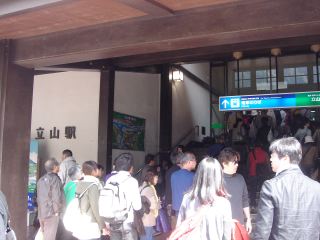 立山駅に着いたら、もの凄い人出です。まぁ自分もその中の一人ですから人のことを言えませんが、大混雑です。これからロープウェイに乗るのですが、1時間以上待ち時間がありました。