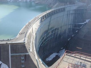 黒部平から黒部湖(1455m)まではケーブルカーで移動します。ここも全線トンネル内を走ります。終点が黒部湖で駅を出るとすぐに黒部ダムです。この写真は展望台からのものです。220段の階段を登らなければなりません。妻はリタイアし、私だけ展望台へ行ってきました。