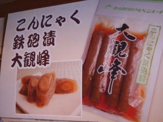 大観峰での定番のお土産がこれ。こんにゃくの鉄砲漬けです。もちろん買ってきました。そして夫婦ともに「今夜、食う?」と言ったことは、ここだけの話しです(笑)