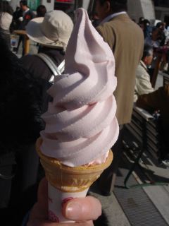 これは黒部ダムの売店で食べた山イチゴのソフトクリームです。甘酸っぱい味わいが新鮮です。