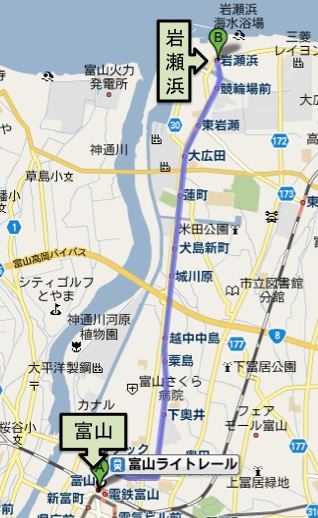 富山駅北10:15〜10:39岩瀬浜 富山ライトレール