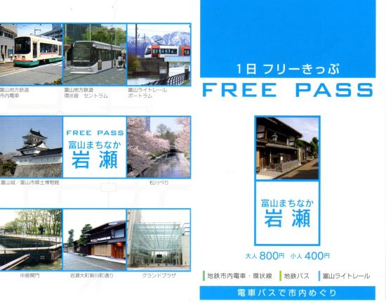 富山駅北口の案内所で富山ライトレールの1日フリーきっぷ(市内電車も一部のバスも含まれる)を買ってから乗り込みます。