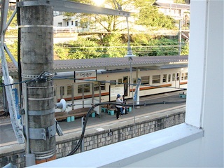 和室の三人部屋だが、窓を開けるとホームが間近に見えるという、鉄ちゃんには応えられないロケーションです(笑)。