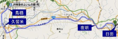 久留米08:23-09:06日田 久大本線 特急ゆふデラックス1号 自由席
