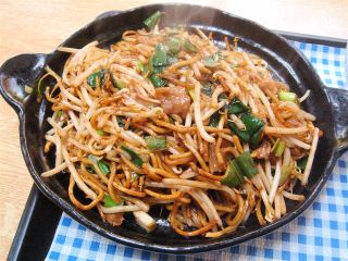日田の焼そばは、生麺を焼いてからソースに絡める。つまり蒸し麺ではない。だから麺を食べる食感がパリパリなのだ。野菜はたっぷりのもやしとニラ、バラ肉。こちらはシャキシャキしている。