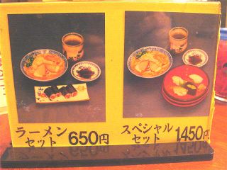 寿司屋のラーメンとして有名なのである。ラーメンと巻き寿司のセットが650円、ラーメンとにぎりのスペシャルセットが1,450円である。